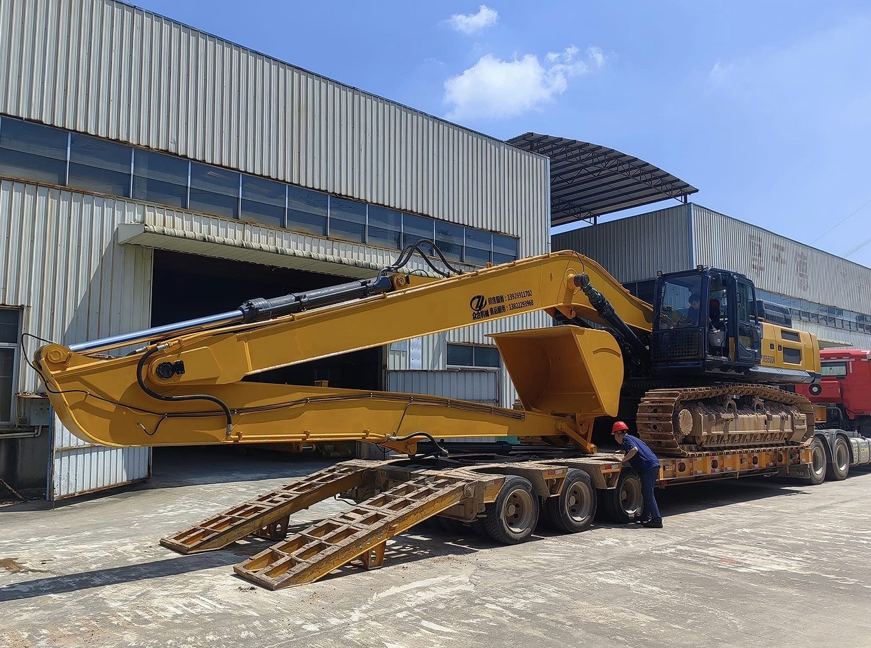 يُعرف ذراع الحفار الطويل أيضًا باسم امتداد ذراع الرافعة أو ملحق الوصول الطويل، وهو تعديل متخصص مصمم لتوسيع نطاق تشغيل الحفار القياسي بشكل كبير. من خلال استبدال أو تمديد ذراع الرافعة وعصا الحفار الأصلية، تسمح هذه الملحقات للآلات بتحقيق نطاقات عمل تتراوح من 10 أمتار إلى أكثر من 40 مترًا، اعتمادًا على التكوين. يستخدم التصميم عادةً فولاذًا منخفض السبائك عالي القوة (HSLA)، مثل WELDOX، للحفاظ على السلامة الهيكلية مع إدارة الوزن.